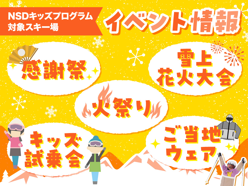 キッズプログラム対象スキー場では、お子様はもちろん、ご家族やご友人と一緒に楽しめるイベントを多数開催しています!
